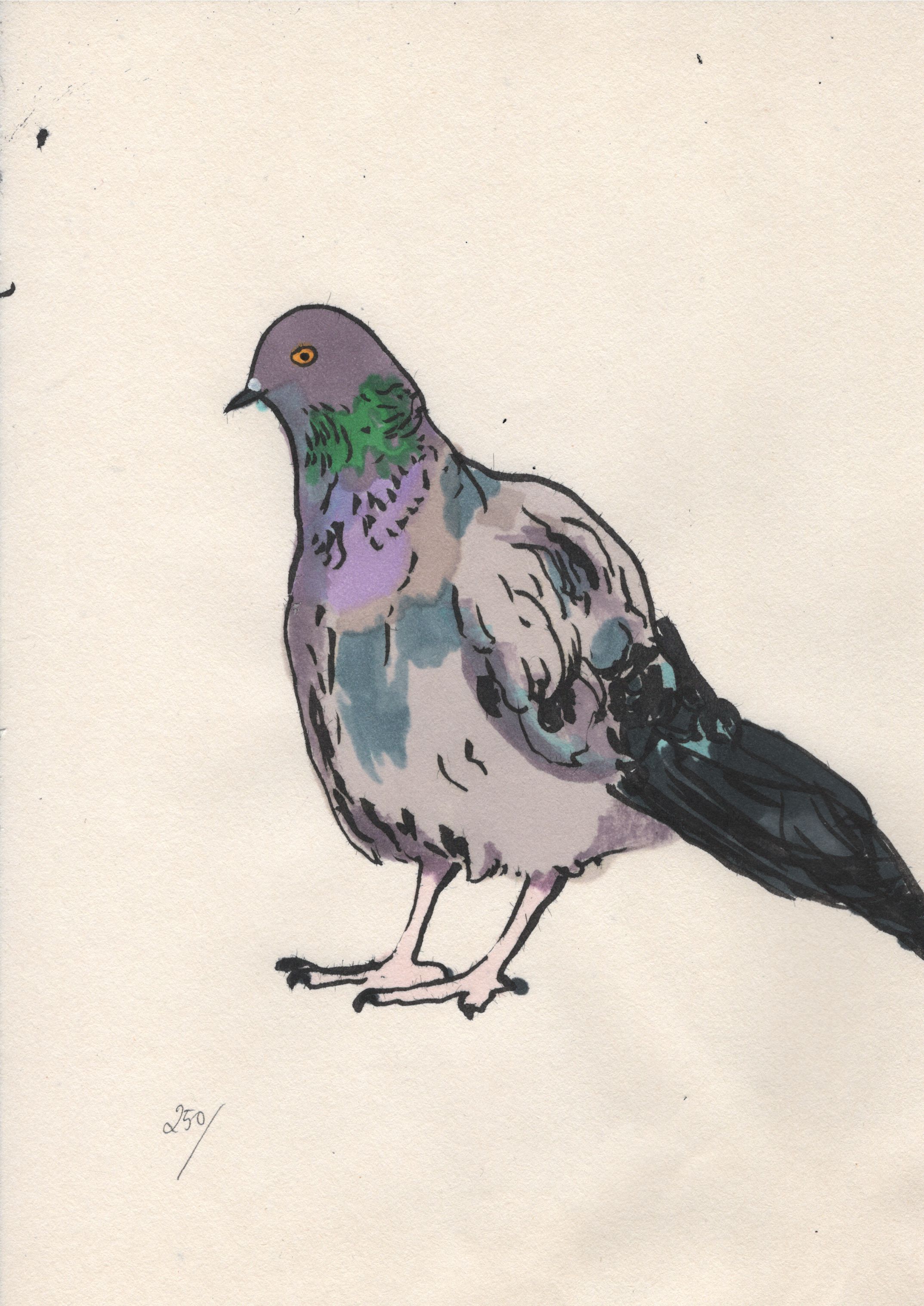 Der Kalender zeigt gezeichnete Vogelmotive der Künstlerin Wiebke Bartsch. Jeder Monat hat zwei Motive, also doppelseitig bedruckt.