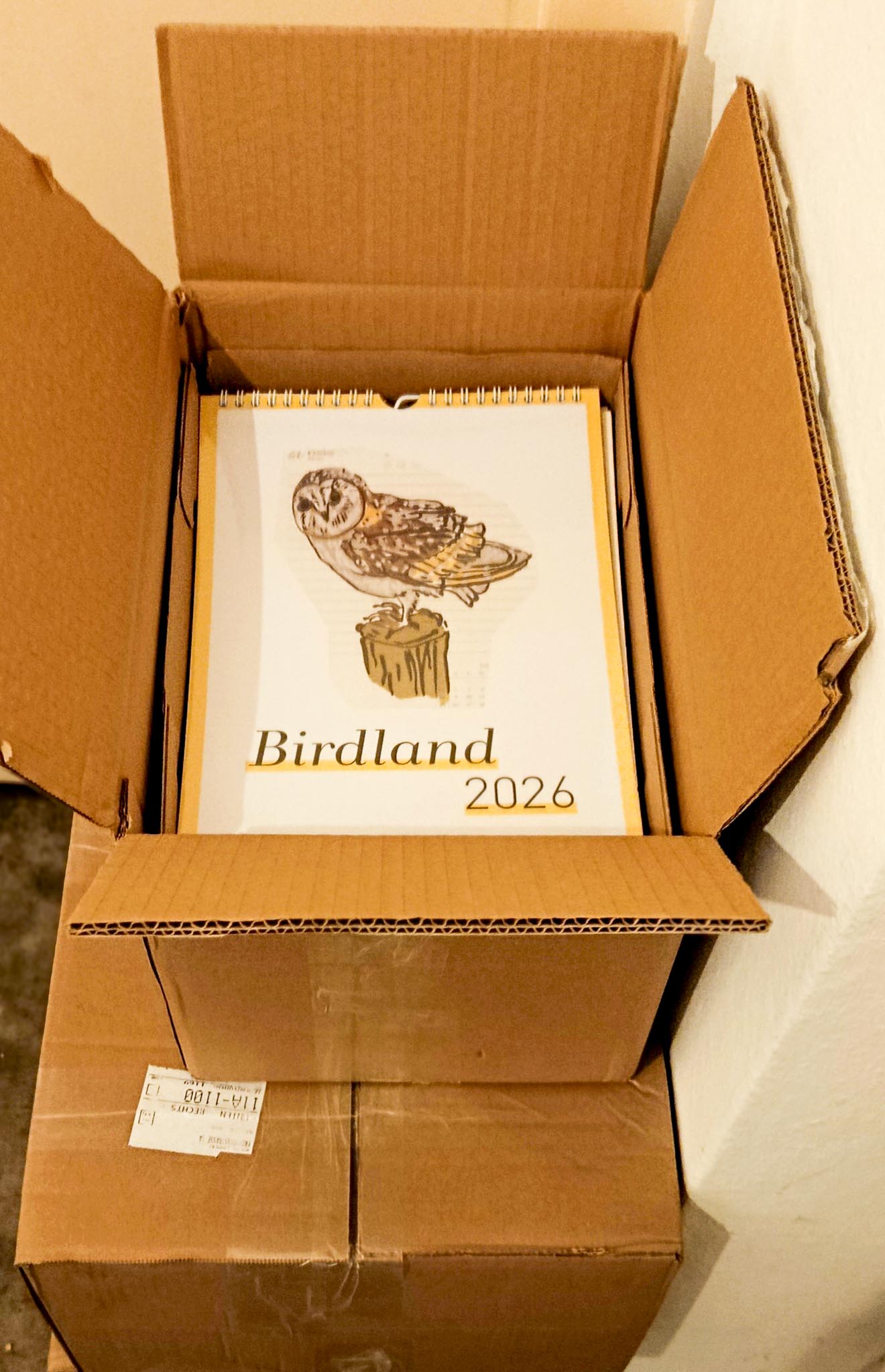Der Kalender zeigt gezeichnete Vogelmotive der Künstlerin Wiebke Bartsch. Jeder Monat hat zwei Motive, also doppelseitig bedruckt.